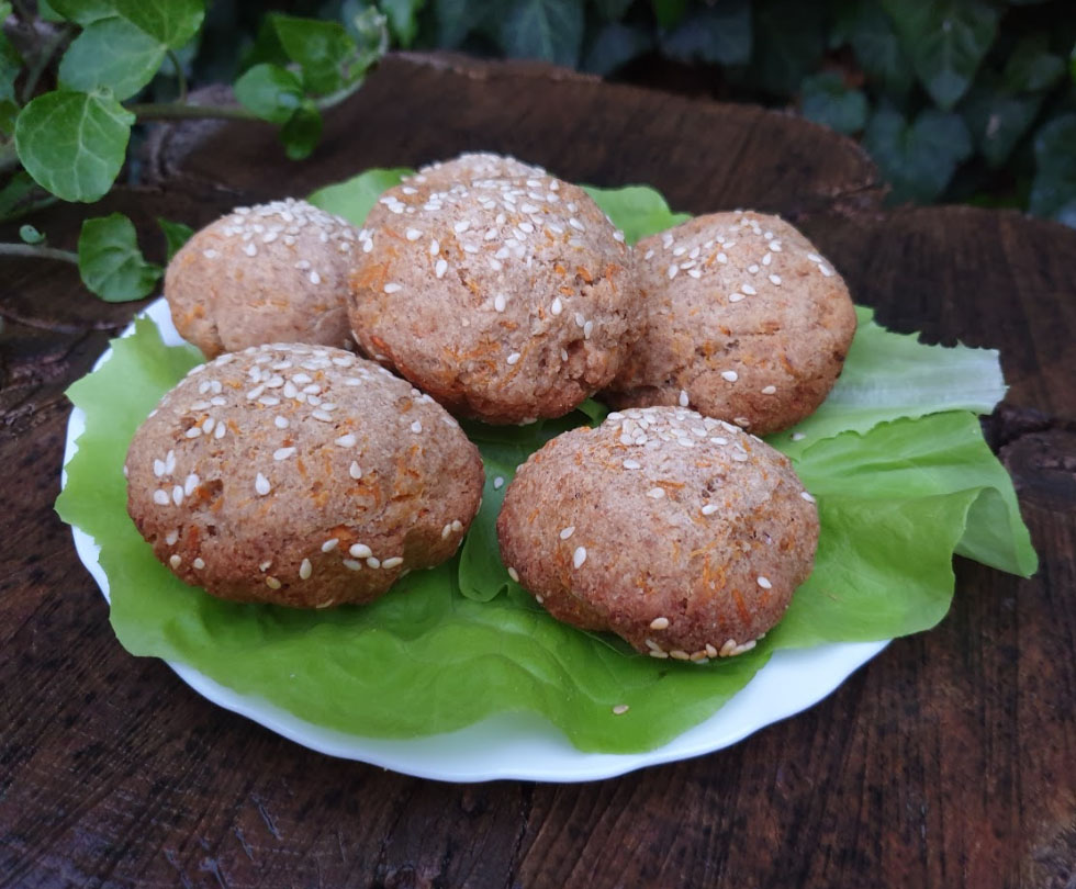 Tészta recept: 5 dkg zabpehelyliszt 15 dkg köles liszt 10 dkg cirokliszt 10 dkg barnarizs liszt 5 dkg mandulaliszt só 1 evőkanál citromlé fél teáskanál szódabikarbóna