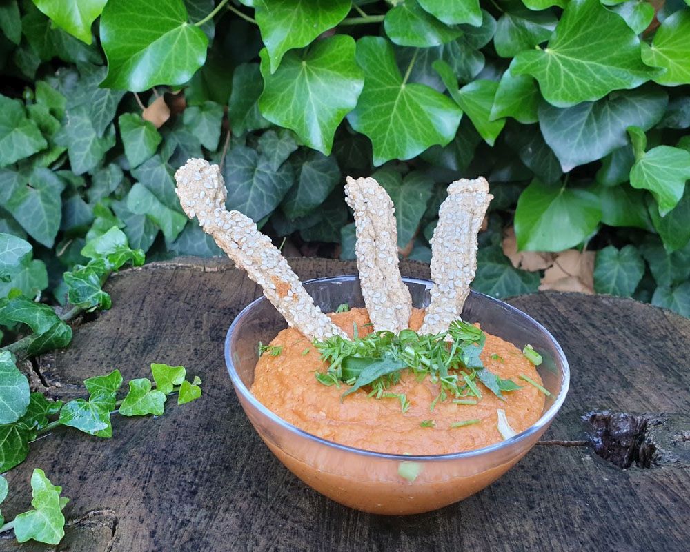 30 dkg főtt bab, vagy főtt lencse vagy főtt csicseriborsó 1 db lilahagyma apró kockákra vágva 1 mokkáskanál só 1 mokkáskanál kömény (vagy lehet fűszer nélkül is készíteni, vagy saját kedvenc fűszert használni) Mixerrel a hozzávalókat elkeverjük