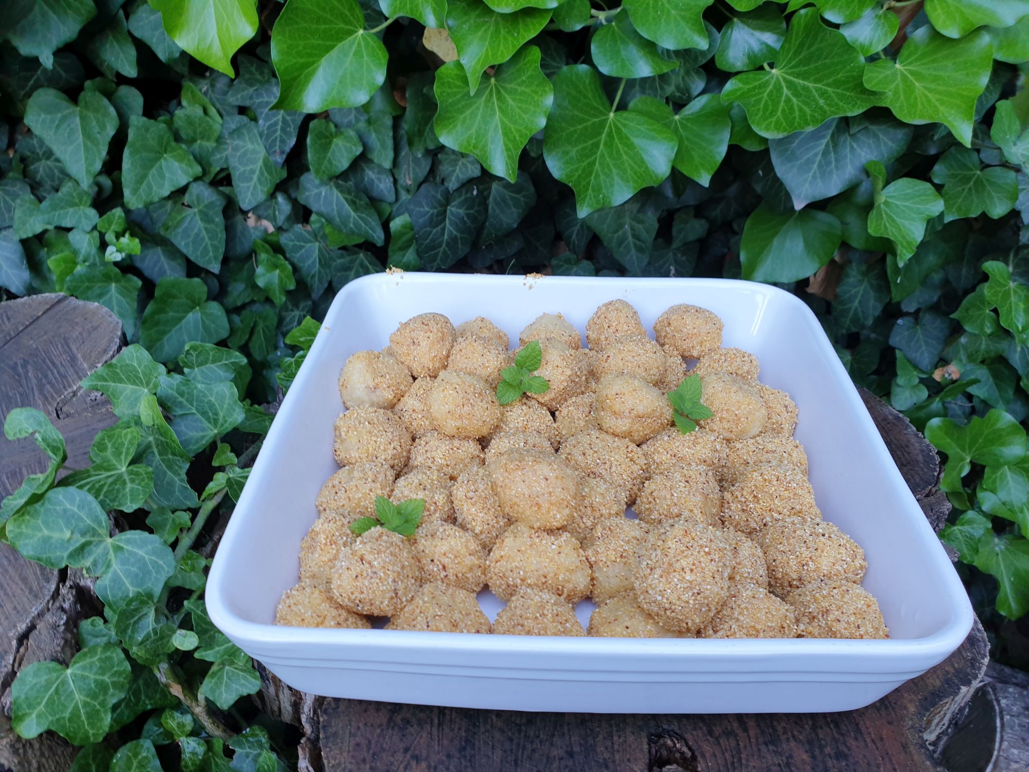 Az édes-savanyú ízű főtt kölesem, amikor megszilárdult gombócokat formázok belőle és beleforgatom a pirított kukoricadarába.
